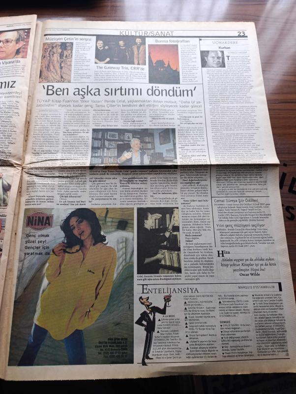 Radikal Gazetesi - Turkish Newspaper - 3 Kasım 1996 - Refah Partisi'nin demokratikleşme paketinden türban çıkacak - Refah Partisi'nin yayın organı milli gazetede yüz öpmek mekruh dendi Fotoğrafı - Tansu Çiller'in bankacısı Halit Cıngıllıoğlu'na soruşturma - madeni 50 bin liralık 12 Kasım'da piyasada - cezaevindeki Işık Yurtçu'ya basın özgürlük ödülü - kabadayı Sedat Peker'den uyuşturucu vakfı Fotoğrafı - Aczmendiler rejimi yıkacağız - Yazar Emine Şenlikoğlu her kesimin yobazı var - Bosna ABD'ye boyun eğdi - Atruş Kampı BM'nin değil PKK'nın elinde - Fenerbahçe ne Ada dinliyor ne Körfez - Galatasaray teselli arıyor - NBA'de ilk maçlar oynandı - tiyatro sinema programı - TÜYAP kitap fuarının Onur yazarı Peride Celal ile röportaj - Nazım Hikmet'in Kuvayı Milliye destanı kapalı gişi oynuyor fotoğraf - Michael Jackson'ın konser rüşveti Fotoğrafı - Charlie Chaplin'den Wood Allen'a yüz yıldır Beyaz perdeyi kahkaya boğan filmlerin en iyileri seçildi fotoğraf - Cemal Süreya şiir ödülleri, Aydın Doğan tarafından kaleme alınmıştır. Radikal Gazetesi - Turkish Newspaper - 3 Kasım 1996 - Refah Partisi'nin demokratikleşme paketinden türban çıkacak - Refah Partisi'nin yayın organı milli gazetede yüz öpmek mekruh dendi Fotoğrafı - Tansu Çiller'in bankacısı Halit Cıngıllıoğlu'na soruşturma - madeni 50 bin liralık 12 Kasım'da piyasada - cezaevindeki Işık Yurtçu'ya basın özgürlük ödülü - kabadayı Sedat Peker'den uyuşturucu vakfı Fotoğrafı - Aczmendiler rejimi yıkacağız - Yazar Emine Şenlikoğlu her kesimin yobazı var - Bosna ABD'ye boyun eğdi - Atruş Kampı BM'nin değil PKK'nın elinde - Fenerbahçe ne Ada dinliyor ne Körfez - Galatasaray teselli arıyor - NBA'de ilk maçlar oynandı - tiyatro sinema programı - TÜYAP kitap fuarının Onur yazarı Peride Celal ile röportaj - Nazım Hikmet'in Kuvayı Milliye destanı kapalı gişi oynuyor fotoğraf - Michael Jackson'ın konser rüşveti Fotoğrafı - Charlie Chaplin'den Wood Allen'a yüz yıldır Beyaz perdeyi kahkaya boğan filmlerin en iyileri seçildi fotoğraf - Cemal Süreya şiir ödülleri adlı eser Türkçe dilindedir.