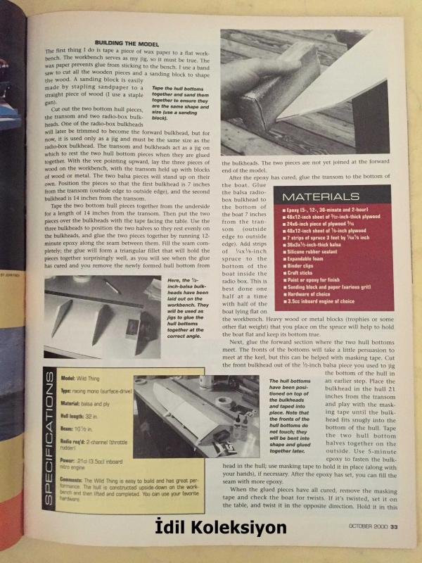 Radio Control Boat Modeler - October 2000 - Vintage Magazine - İngilizce Uzaktan Kumandalı Model Bot Dergisi - Cheap Speed get the most from the 05 motor - Tunnelhull Performance - Construction Build a 50 mph 3.5cc Monohull - Kyosho Atlantio 600 Sport Yacht - Warehouse Hobbies Nitro Gator JR Pull Start - Lehmar - U47 Submarine - Paula III