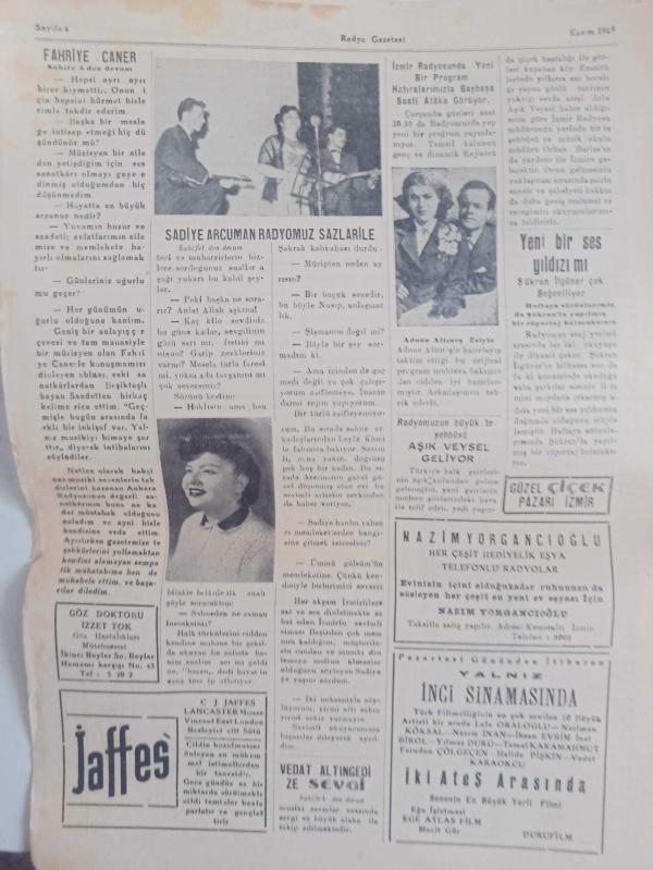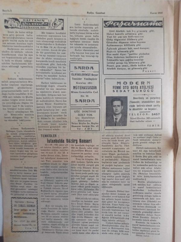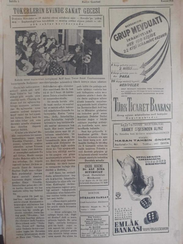Radyo Gazetesi Siyasi Radyo ve Sanat Dergisi - 10 Kasım 1954 - Mazi ve Devrim - Stajerler Okudular - Hisarlı Mahkemede - Yeni Tanbur - Bayramla Matem Arasında Atatürk - Sadiye Arcuman ile Bir Konuşma - Deli Bu Selahatin - Bütün Azası Malul Sanatkar - Haftanın Sanat Dedikoduları - Tenkidler: İstanbulda Büzürg Konseri - Değerli Sanatkar - Fahriye Caner'le Konuşurken - Fahriye Caner - Sadiye Arcuman Radyomuz Sazlar İle - Yeni Bir Ses Yıldızı Mı - Aşık Veysel Geliyor - Vedat Altıngedize Sevgi - Hayal İçinde Hayal - Muzaffer Yıldırımkal - Tokerlerin Evinde Sanat Gecesi - Türk Ticaret Bankası Reklamı - Emlak Bankası Reklamı fotoğraf ve haberi - Tam Takım Dergi Yıpranma, sararmalar, kupon kesiği ve yırtılmalar zamana bağlı olarak görülebilir