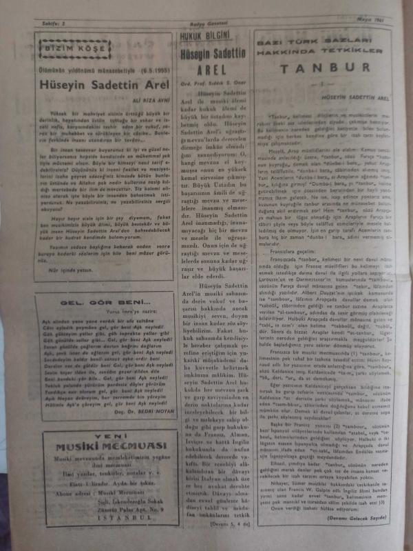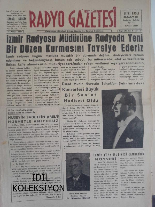 Radyo Gazetesi Siyasi Radyo ve Sanat Dergisi - 10 Mayıs 1961 - İzmir Radyosu Müdürüne Radyoda Yeni Bir Düzen Kurmasını Tavsiye Ederiz - Hüseyin Sadettin Arel'i Hürmetle Anıyoruz - Üstad Münir Nurettin Selçuk'un Şehrimizdeki Konserleri Büyük Bir Sanat Hadisesi ldu - İzmir Türk Musikisi Cemiyetinin Konseri - Muzaffer Etabek - Bazı Türk Sazları Hakkında Tetkikler Tanbur - Hüseyin Sadettin Arel - Emin Ongan - Vecihe Daryal - Veci Seyhun - Burhan Atalay - Nazmi Yükselen Geldi - Ali Rıza Avni fotoğraf ve haberi - Tam Takım Dergi Yıpranma, sararmalar, kupon kesiği ve yırtılmalar zamana bağlı olarak görülebilir