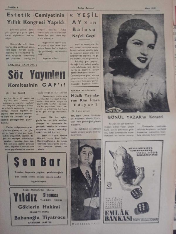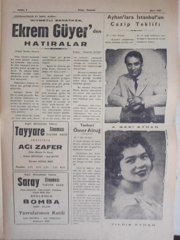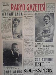 Radyo Gazetesi Siyasi Radyo ve Sanat Dergisi - 11 Mart 1959 - Yıldız Ayhan - Ayhan'lara İstanbul'un Cazip Teklifi - Saz Üstadlarımızdan: Tanburi Ömer Altuğ - Müzik Yayınlarını Kim İdare Ediyor? - Maşallah! - 14 Martta: Sevim Çağlayan Konseri - Ankara Radyosu: Söz Yayınları Komitesinin GAF'ı - Büyük Sürprizlerle Dolu Bir Koro: Yurttan Sesler ve Bazı Olaylar - İlhami Tansel - Değerli Bariton: Özcan Sevgen Nikahlandı - Ziraat Bankası Reklamı - Kıymetli Sanatkar Ekrem Güyer'den Hatıralar - Tayyare Sineması - Saray Sineması - A. Gazi Ayhan - Estetik Cemiyetinin Yıllık Kongresi Yapıldı - Şen Bar - Yıldız Sineması - Yeşil Ay'ın Balosu Neşeli Geçti - Muzaffer İlkar - Gönül Yazar'ın Konseri - Emlak Bankası Reklamı fotoğraf ve haberi - Tam Takım Dergi Yıpranma, sararmalar, kupon kesiği ve yırtılmalar zamana bağlı olarak görülebilir