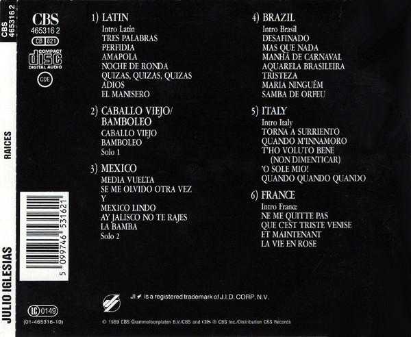 Julio Iglesias – Raices Label: CBS – 465316 2, CBS – CBS 465316 2 Format: CD, Album Country: Europe Released: 1989