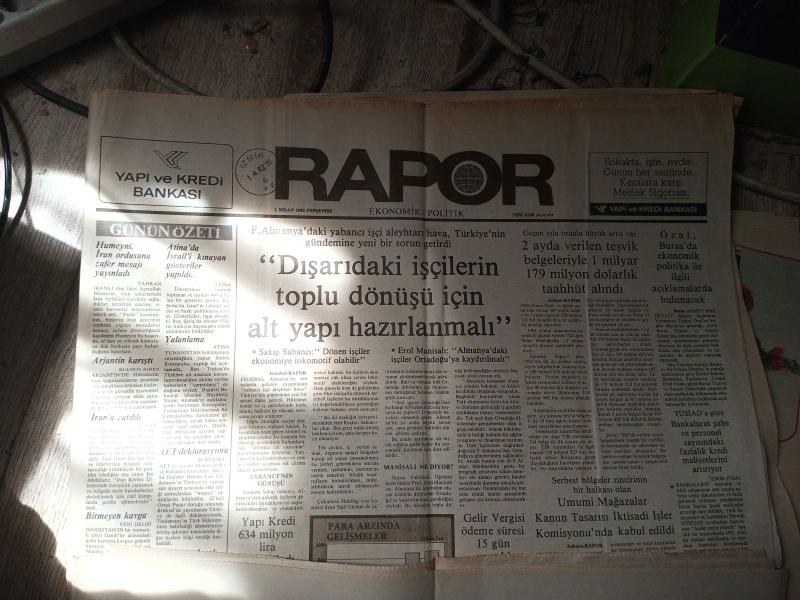 Rapor ekonomik politik günlük gazete 1.4.1982 adlı eser Türkçe dilindedir.