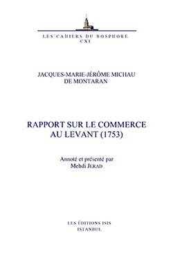 Rapport Sur Le Commerce Au Levant [1753] / Annoté et présenté par Mehdi JERAD, Jacques-Marie-Jérome Michau de Montaran tarafından kaleme alınmıştır. Kitap 2022 yılında The Isis Press tarafından [İstanbul] 978-975-428-679-3 ISBN kodu ile yayınlanmıştır. 402 sayfadır. Rapport Sur Le Commerce Au Levant [1753] / Annoté et présenté par Mehdi JERAD adlı eser Fransızca dilindedir.