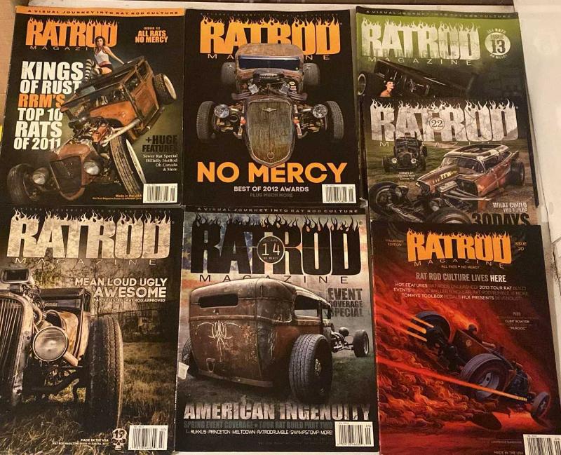 "rat rod" olarak bilinen, genellikle eski, paslı ve kişiselleştirilmiş parçalardan yapılan özel yapım araçlara odaklanan "Rat Rod Magazine" dergisinin çeşitli sayıları yer almaktadır. Dergi İçeriği: Rat rod araçlarının fotoğrafları, inşa hikayeleri ve etkinlik raporları. Kültür: Hot rod kültürünün daha asi ve ekonomik bir türevi olan rat rod topluluğuna hitap eder.