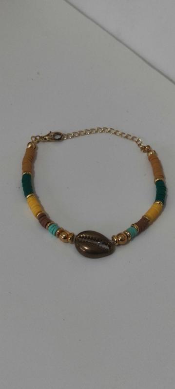 Renkli boncuklardan oluşan, ortasında kabuk figürü bulunan ve ayarlanabilir zincirli bohem tarzda kadın bileklik. iç çap 6;5 cm sıfır üründür diğer ürünlerime de bakmayı unutmayın