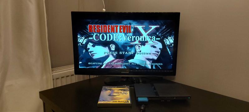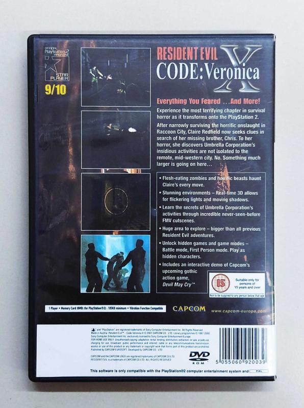 2000 yılında Capcom tarafından piyasaya sürülen, orijinal PS2 Sony lisans damgalı Resident Evil : Code Veronica X oyunu. Kutu içerisinde oyun diskinin yanı sıra ünlü Devil May Cry oyununun orijinal PS2 demo oyun diski bulunmaktadır. Bu sebeple son derece nadirdir. İki oyunun hayranları içinde koleksiyonluk ve arşivlik bir settir. Disklerde oynatmaya engel olmayan çizikler mevcuttur. İki diskte denenmiştir, sorunsuz bir şekilde çalışmaktadır. Son fotoğraflarda çalışır halde görüntüleri mevcuttur.