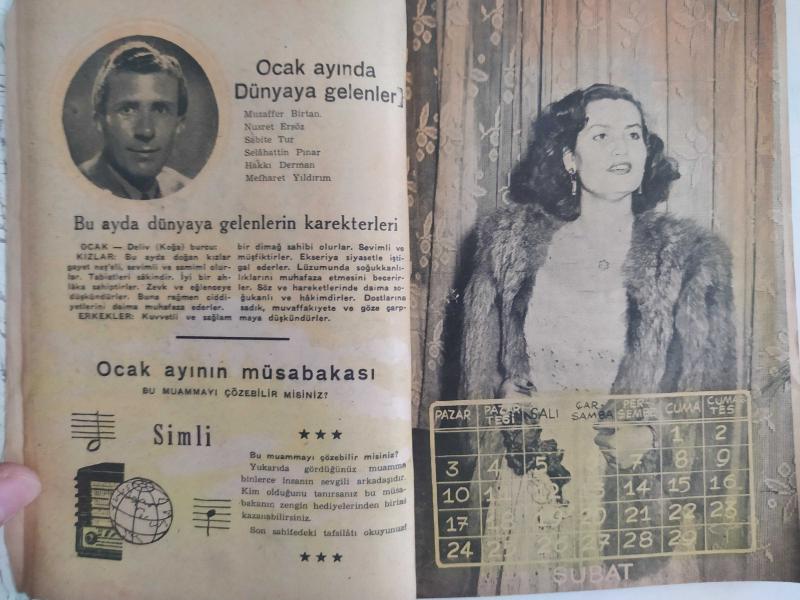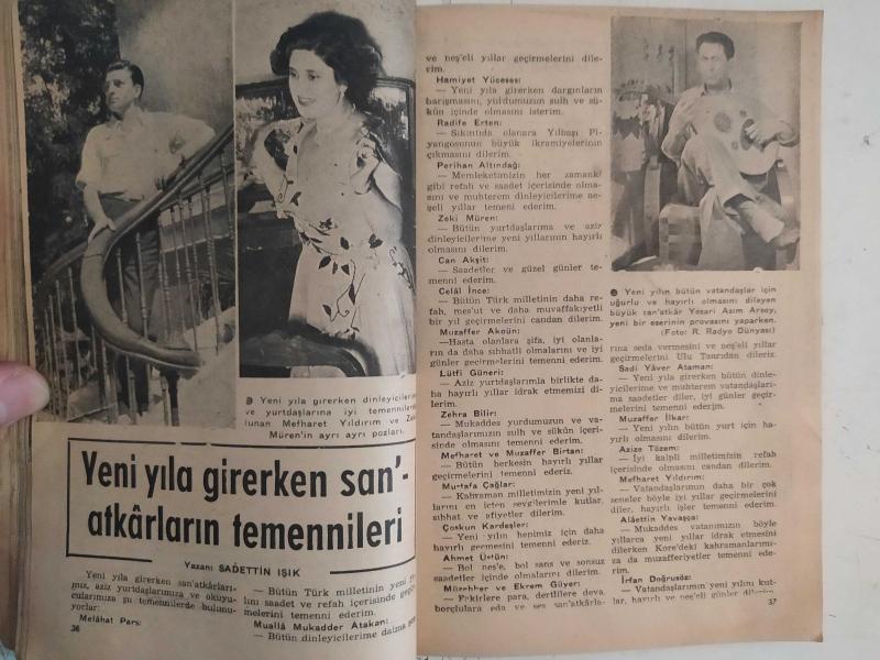 Resimli Radyo Dünyası Aktüalite Sinema Tiyatro Müzik ve Magazin Dergisi - 1952 Yıllığı - Perihan Sözeri - Safiye Ayla, Afife Edipoğlu, Mualla Mukadder, Akile Artun, Suzan Güven, Ahmet Üstün, Gazanfer Bilge, Müzeyyen Senar, Necdet Cici, Asım Arsoy, Muzaffer Akgün, Mustafa Çağlar, Zehra Bilir, Mualla Gökçay, Celal İnce, Necla Üstün, Nurettin Selçuk, Tonguç Tursan, Ahmet Üstün, Lütfü Güneri, Necdet Gezen, İsmail Tezelli, Sebahat Berberoğlu, Mualla Aracı, İrfan Doğrusöz, Kadri Şençalar, Selahattin Pınar, Şemsi Yastıman, Ekrem Kongar, Rikkat Uyanık, Esma Engin, Şeref İçli, Osman Nihat, Rakım Elkutlu, Baki Suha Edipoğlu, Tarık Gürcan, Mekşufe Ekeman, Selahattin Küçük, Mine Coşkun Sadi Hoşses fotoğrafları, biyografileri ve haberleri. - Tam Takım Dergi Yıpranma, sararmalar, kupon kesiği ve yırtılmalar zamana bağlı olarak görülebilir