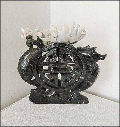 Retro 1950ler El Yapımı İki Renk Dushan Jade Yeşim Taşı İyi Şans Tılsımı Büyük Figürin Biblo ÇİN başlıklı antika/koleksiyon objesinin menşei belirtilmemiştir. Objenin ait olduğu dönem bilinmeketedir.