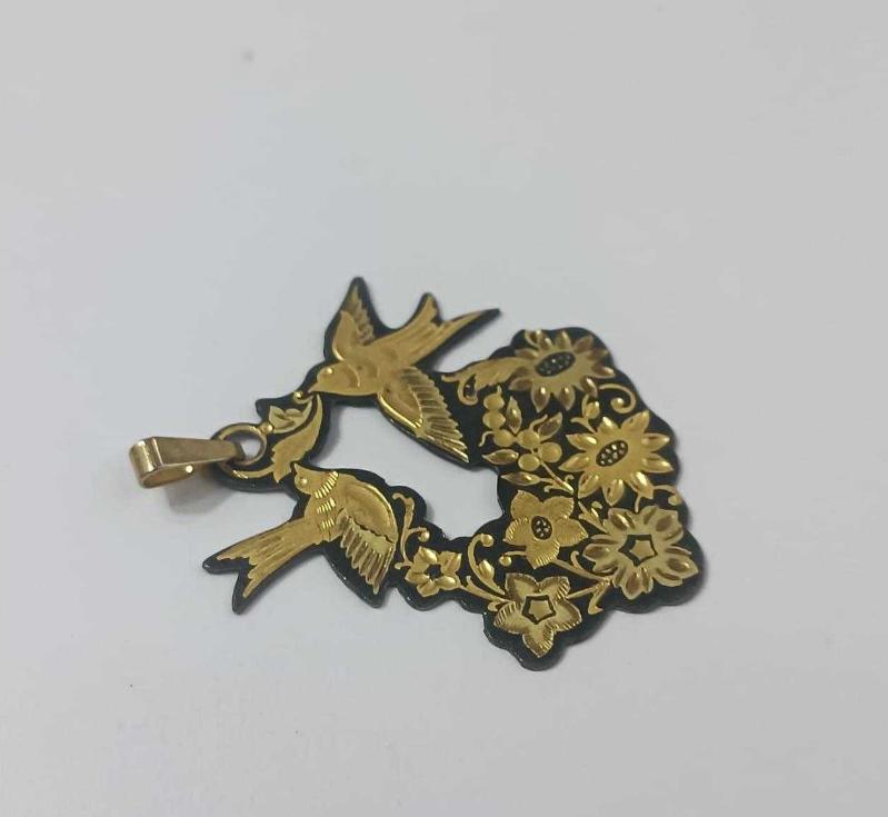 Retro 24 Ayar Altın Kakma Kuş Figürlü Modernist Toledo Kolye başlıklı antika/koleksiyon objesinin menşei belirtilmemiştir. 1960-1979 arası dönemine aittir.
