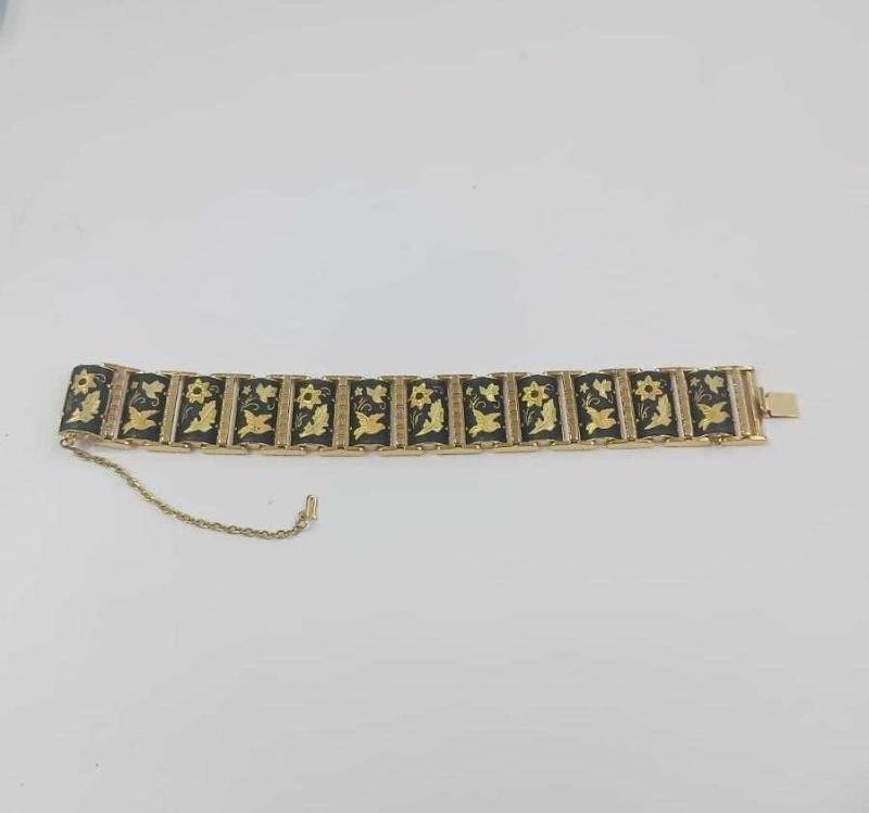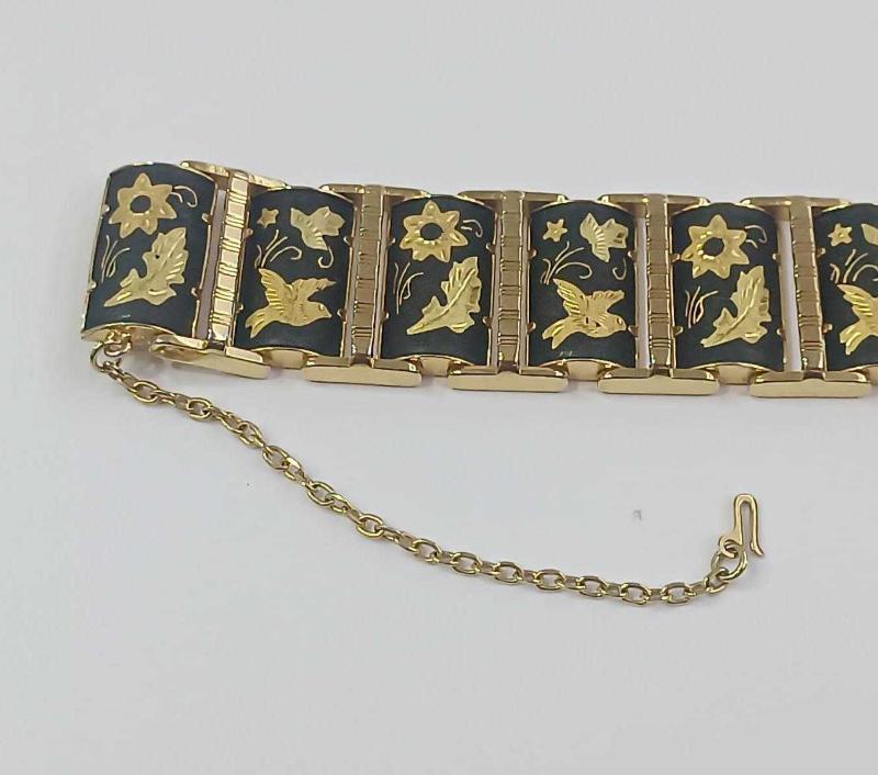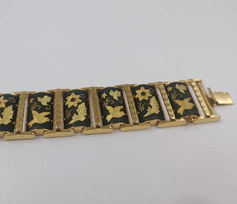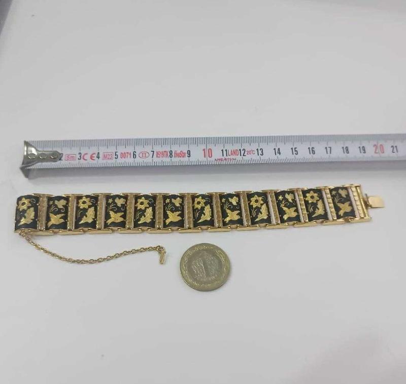 Retro 24 Ayar Altın Kakma Kuş Figürlü Toledo Bileklik başlıklı antika/koleksiyon objesinin menşei belirtilmemiştir. 1960-1979 arası dönemine aittir.