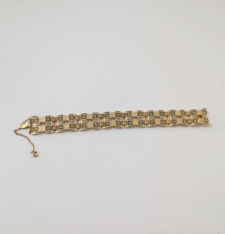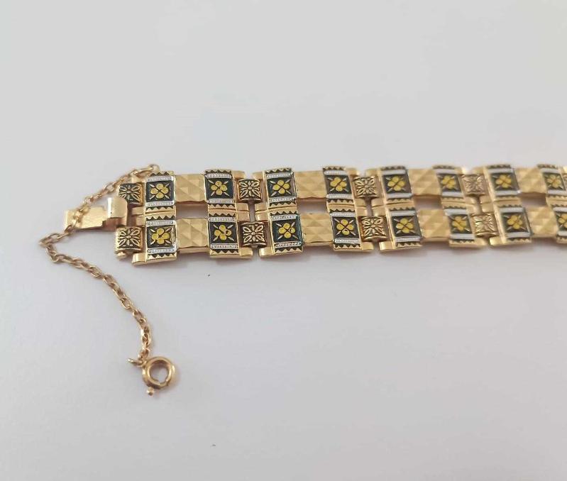Retro 24 Ayar Altın Kakma Toledo Bileklik başlıklı antika/koleksiyon objesinin menşei belirtilmemiştir. 1960-1979 arası dönemine aittir.