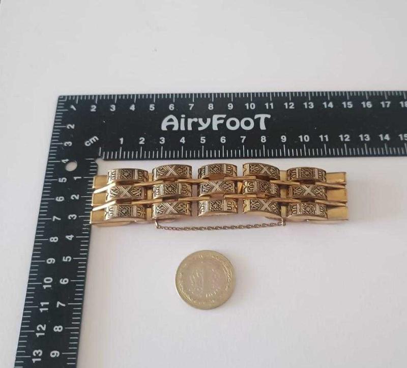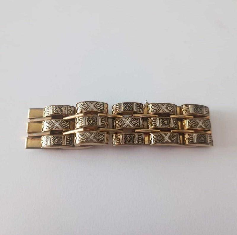 Retro 24 Ayar Altın Kakma Toledo Bileklik başlıklı antika/koleksiyon objesinin menşei belirtilmemiştir. 1960-1979 arası dönemine aittir.