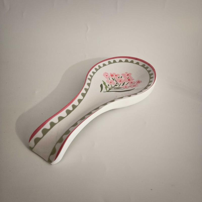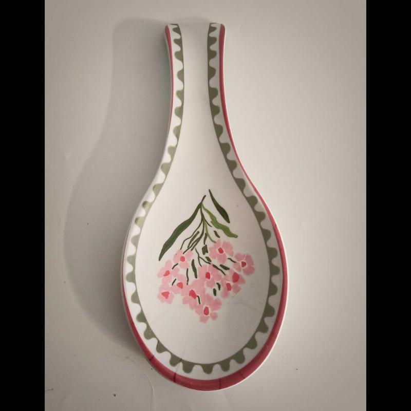 Retro Melamin Kaşıklık - Pembe Çiçekli başlıklı antika/koleksiyon objesinin menşei belirtilmemiştir. 2000 ve sonrası dönemine aittir.