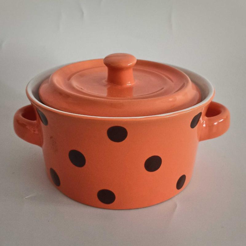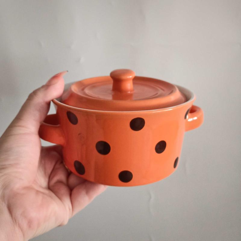 Puantiyelerin neşesiyle mutfağa sıcaklık katan bu mini güveç, nostaljik bir zarafetin modern bir yansıması. Turuncu tonunun enerjisiyle sofralara canlılık, sade formuyla da zamansız bir şıklık getiriyor. Hem dekoratif hem işlevsel bir parça. • Seramik • Yakın dönem üretim • 12,5 cm çap, 6,5 cm derinlik • İmalattan kaynaklı küçük hatalar dışında kusursuz kondisyonda Küçük porsiyonlar, tatlı sunumları ya da mutfakta dekoratif bir detay için kullanılabilir. Country, retro ya da eklektik mutfaklara keyifli bir dokunuş olacaktır. Bu ürünün mavi renkte bir benzeri daha ilanlarımızda mevcuttur. . . . #vintagekitchen #seramikgüveç #retrodecor #puantiyelimutluluk #mutfakdekorasyonu #vintagesofra #retrostyle #countrymutfak #janickoantik #retrohome #retromutfak