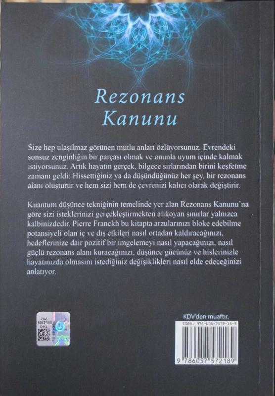 Rezonans Kanunu, Pierre Franckhm tarafından kaleme alınmıştır. Kitap 2025 yılında Koridor Yayıncılık tarafından [İstanbul] 978-605-7572-18-9 ISBN kodu ile yayınlanmıştır. Bu baskının çevirisi Bengisu Akipek tarafından yapılmıştır. 204 sayfadır. Rezonans Kanunu adlı eser Türkçe dilindedir.