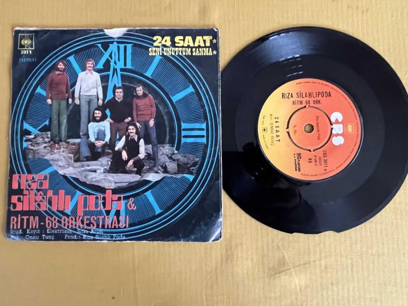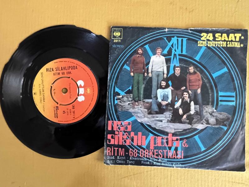 Rıza silahlı poda &Ritm 68 orkestrası 45 plak ’’24 saat-Seni unuttum sanma orijinal dönem baskı Kapak: yırtık eksik vs.Yok Plak: kırıklar var