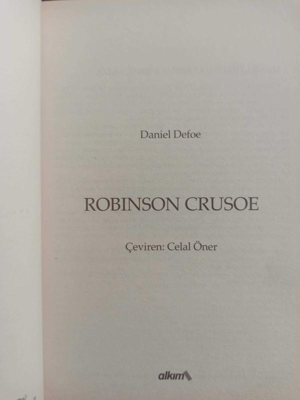 Robinson Crusoe - Daniel Defoe - Alkım Yayınları - 2004 Yılı - Türkçe Kitap, Daniel Defoe tarafından kaleme alınmıştır. Kitap Alkım Yayınları tarafından yayınlanmıştır. 320 sayfadır. Robinson Crusoe - Daniel Defoe - Alkım Yayınları - 2004 Yılı - Türkçe Kitap adlı eser Türkçe dilindedir. Eserin içeriğinde Türkçe dilinde bölümlere de yer verilmektedir.