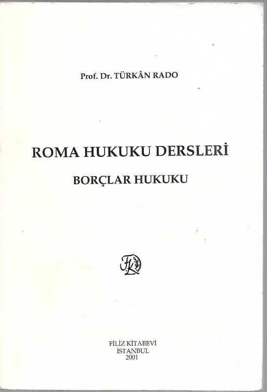 Roma Hukuku Dersleri - Borçlar Hukuku, Türkan Rado tarafından kaleme alınmıştır. Kitap 2001 yılında Filiz Kitabevi tarafından [İstanbul] yayınlanmıştır. 244 sayfadır. Roma Hukuku Dersleri - Borçlar Hukuku adlı eser Türkçe dilindedir.
