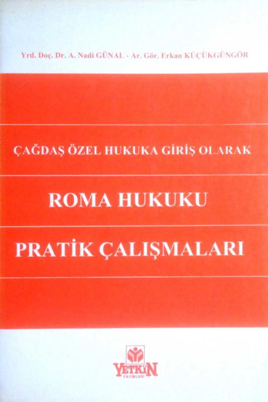 Roma Hukuku Pratik Çalışmaları, A. Nadi Günal;Erkan Küçükgüngör tarafından kaleme alınmıştır. Kitap 1998 yılında Yetkin Yayınları tarafından [Ankara] 975464120X ISBN kodu ile yayınlanmıştır. 359 sayfadır. Roma Hukuku Pratik Çalışmaları adlı eser Türkçe dilindedir.