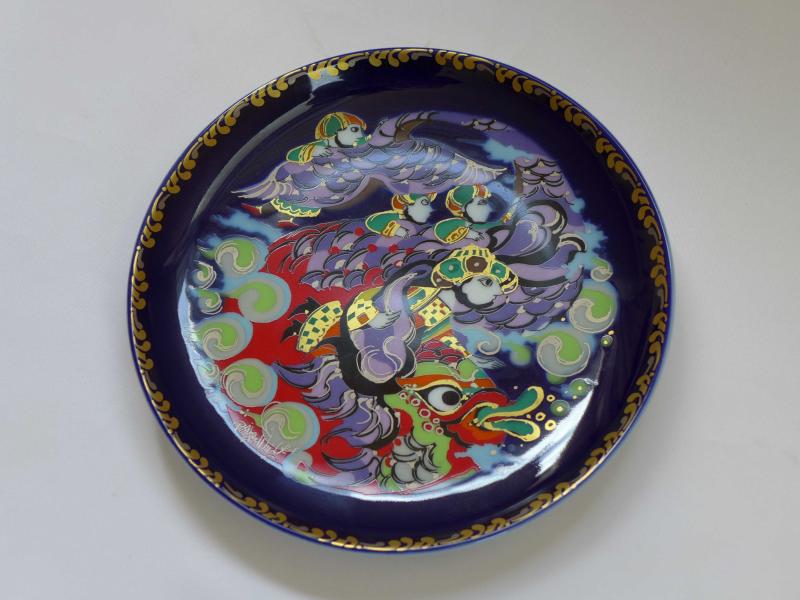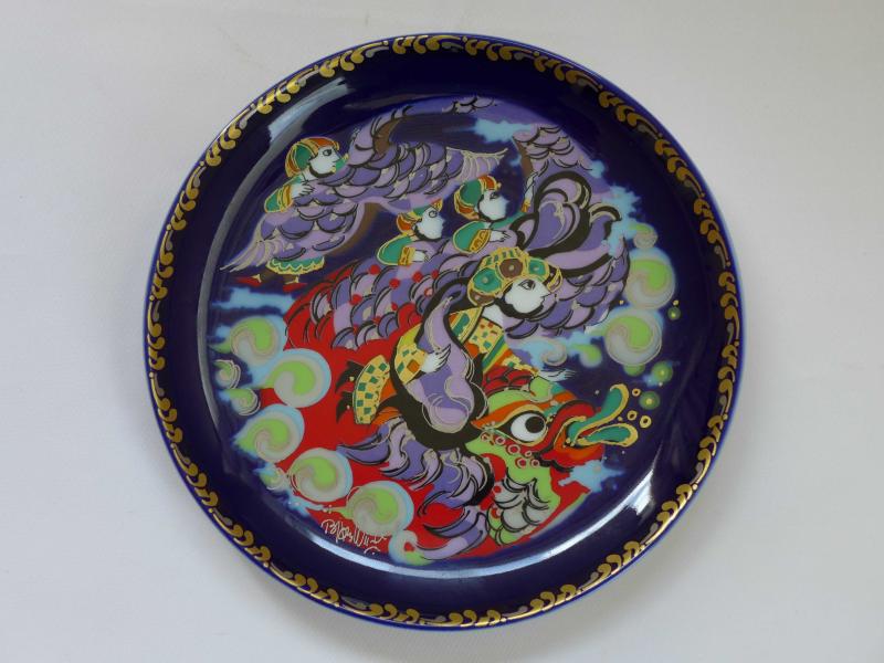 Ünlü Alman Porselen Firması Rosenthal'in Sinbad Serisi Porselen Duvar Tabağı Kobalt mavi zemin üzerine altın yaldız ve parlak renklerle dekorlu Danimarkalı sanatçı Bjorn Wiinblad imzalı Çap: 16,5 cm Koleksiyondan, Kusursuz Durumda Yurtiçi Kargo ile Gönderilir
