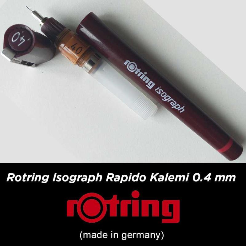 Rotring Isograph Rapido Kalemi 0,4 mm Yenilikçi bastır-çıkart başlık hızlı temizleme için mürekkep helezonuna kolay erişim sağlar. Aşınmaya karşı dayanıklı, sert krom kaplamalı ince ucu sayesinde son derece detaylı çalışmalarda bulunabilirsiniz. #rotring #rapido #çizim #mimari #grafik #harita #mürekkep #kalem #rapidokalem #teknik