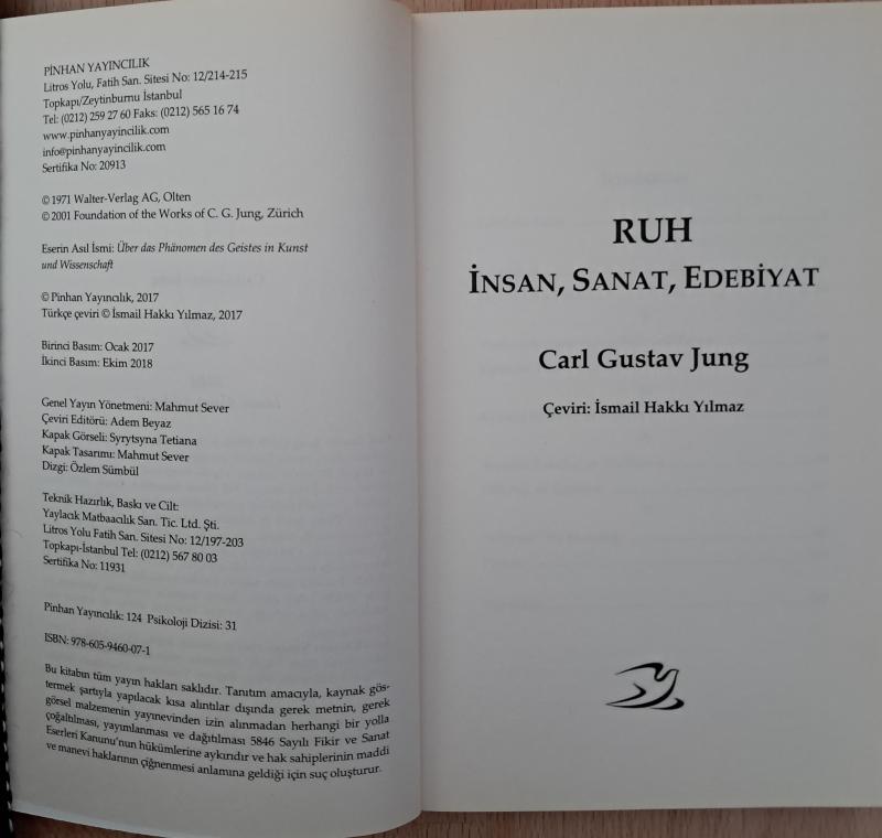 Ruh insan, sanat, edebiyat, Carl Gustav Jung tarafından kaleme alınmıştır. Kitap 2021 yılında Pinhan Yayınları tarafından [İstanbul] yayınlanmıştır. 198 sayfadır. Sayfa bilgisi 2. hamur olarak belirtilmiştir. Ruh insan, sanat, edebiyat adlı eser Türkçe dilindedir.