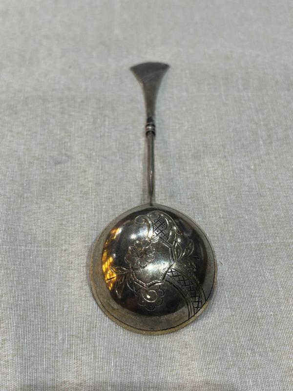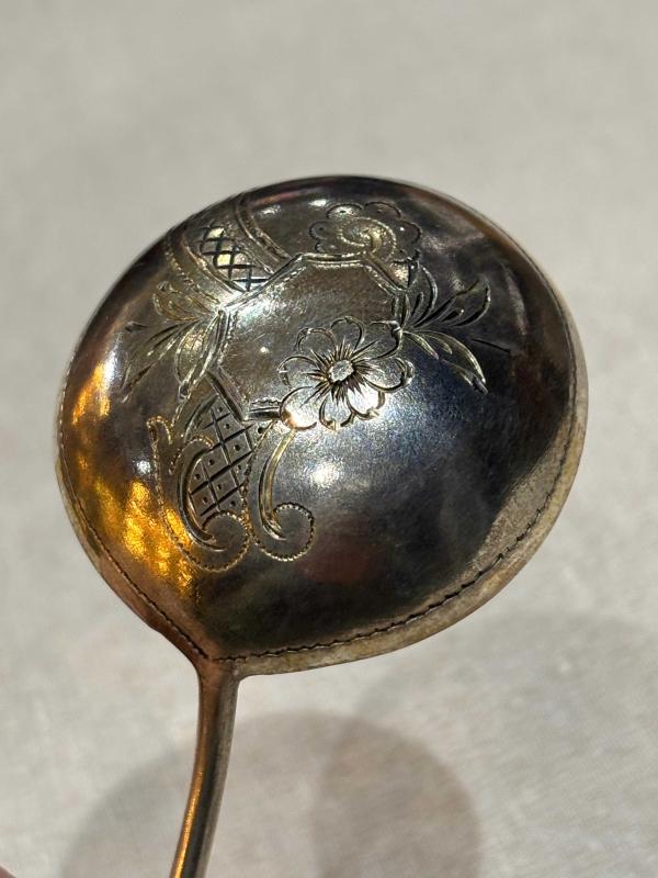 Çarlık Rusya dönemi, 84 zolotnik damgalı gümüş üzeri kalem işçilikli koleksiyonluk kaşık. 23 gram ağırlığında ve 15 cm uzunluğundadır