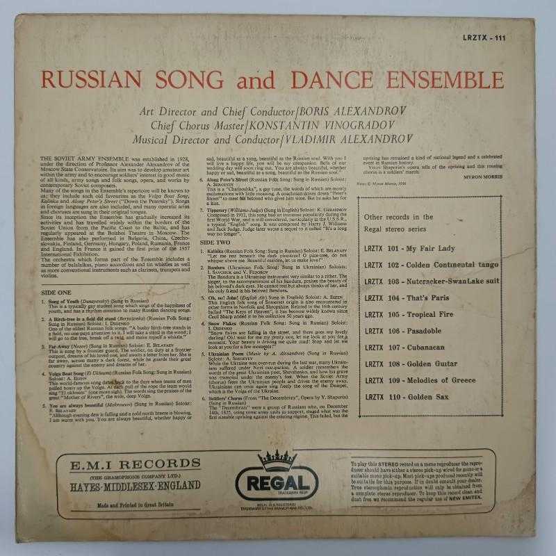 şarkıcı/grup- The Soviet army ensemble şarkılar - tür -MARŞ baskı/press -TR plak -7,5-8/10 kapak -7-7,5/10 MPN no -LRZTX-111 bilgi -