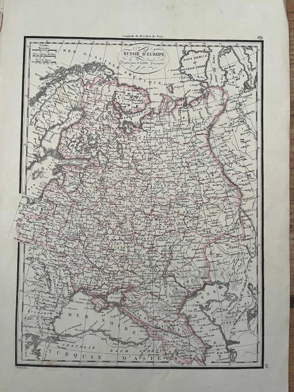 Adrian-Hubert Brue (1786-1832), Avrupa Rusya’sı haritası 40x27 cm 1820’ler. Bakır gravür. Kondisyonu iyidir.