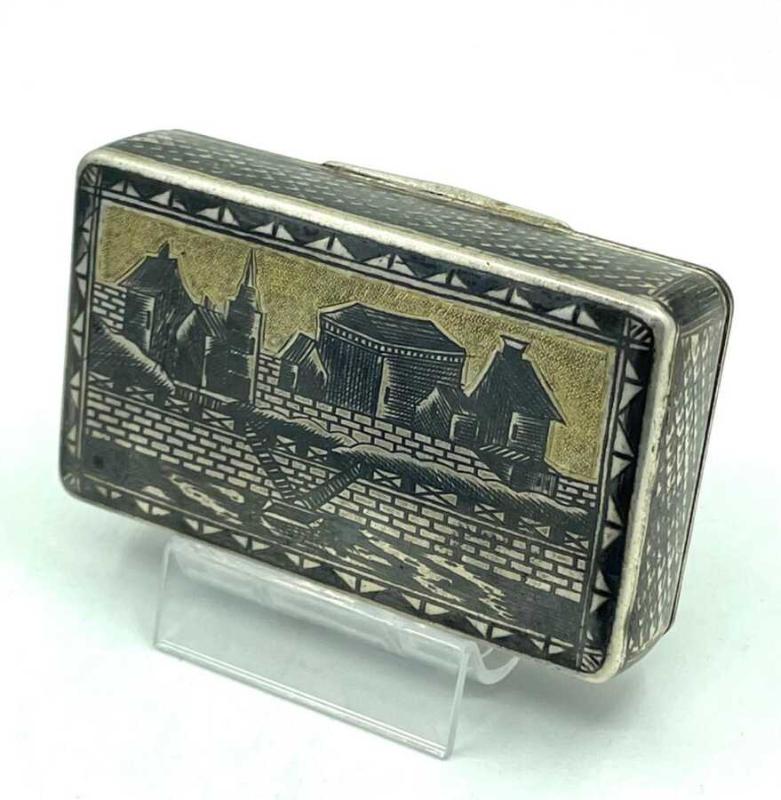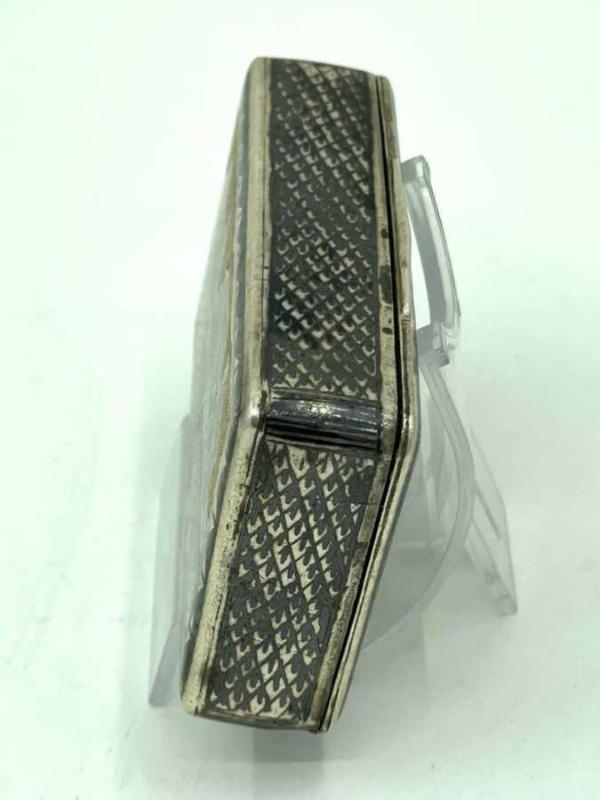 Osmanlı Dönemi Van Ermeni Usta İşi Damgalı Savatlı Ayasofya Camii Madeni Gümüş Ağırlık 80.88 gr Boyutları 7.6cm (en) x 4.5 (boy)x1.9 cm Diğer Bilgiler Savatlı Gümüş Tütün Tabakası