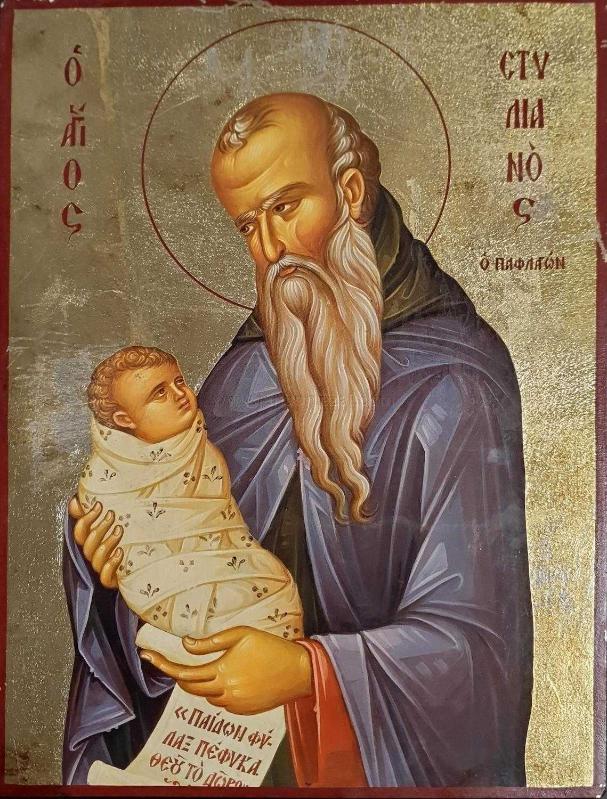 Rusya, Kutsal Aziz Stylian Temalı (Rus Ortodoks) İkona. Geleneksel Bizans Sanat İkonografisine Bağlı Kalınarak El Yapımı "Litografi" Baskı. Uzman Sanatçılar Tarafından Ahşap Üzerine 4 Renk+Altın Varak olarak İşlenmiştir. Duvara Monteye ve Ayakta Sergilemeye Uygundur. Orijinal Olarak Rusya'da Üretilmiştir ve Sertifikalıdır.