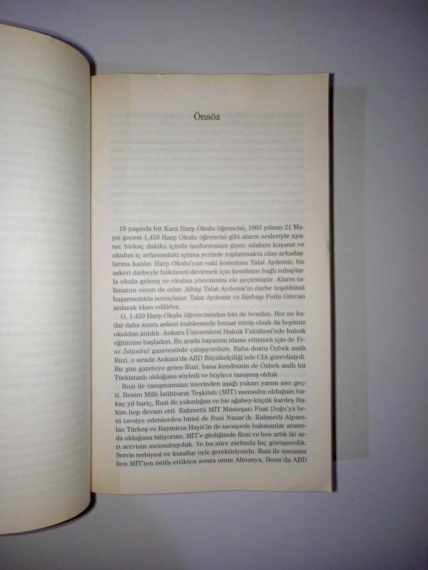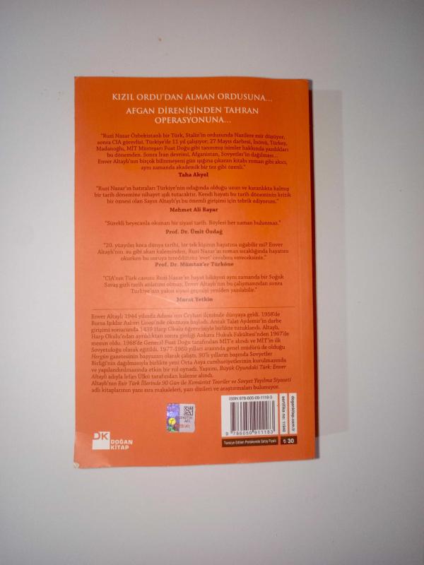 Yaşamını Sovyetler Birliğinin çöküşüne ve Türkistan mücadelesine adayan Ruzi Nazarın yaşamöyküsü... CIAda geçirdiği 40 yılın bilinmeyen yönleri... Ruzi Nazar Özbekistanlı bir Türk, Stalinin ordusunda Nazilere esir düşüyor, sonra CIA görevlisi. Türkiyede 11 yıl çalışıyor; 27 Mayıs darbesi, İnönü, Türkeş, Madanoğlu, MİT Müsteşarı Fuat Doğu gibi tanınmış isimler hakkında yazdıkları bu dönemden. Sonra İran devrimi, Afganistan, Sovyetlerin dağılması Enver Altaylının birçok bilinmeyeni gün ışığına çıkaran kitabı roman gibi akıcı, aynı zamanda akademik bir tez gibi özenli. Taha Akyol Ruzi Nazarın hatıraları Türkiyenin odağında olduğu uzun ve karanlıkta kalmış bir tarih dönemine nihayet ışık tutacaktır. Kendi hayatı bu tarih döneminin kritik bir öznesi olan Sayın Altaylıyı bu önemli girişimi için tebrik ediyorum. Mehmet Ali Bayar Sürekli heyecanla okunan bir siyasi tarih. Böylesi her zaman bulunmaz. Prof. Dr. Ümit Özdağ 20. yüzyılın koca dünya tarihi, bir tek kişinin hayatına sığabilir mi? Enver Altaylının su gibi akan kaleminden, Ruzi Nazarın roman sıcaklığında hayatını okurken bu soruya tereddütsüz evet cevabını vereceksiniz. Prof. Dr. Mümtazer Türköne CIAnın Türk casusu Ruzi Nazarın hayat hikâyesi aynı zamanda bir Soğuk Savaş gizli tarih anlatımı olmuş; Enver Altaylının bu çalışmasından sonra Türkiyenin yakın siyasi geçmişi yeniden yazılabilir. Murat Yetkin
