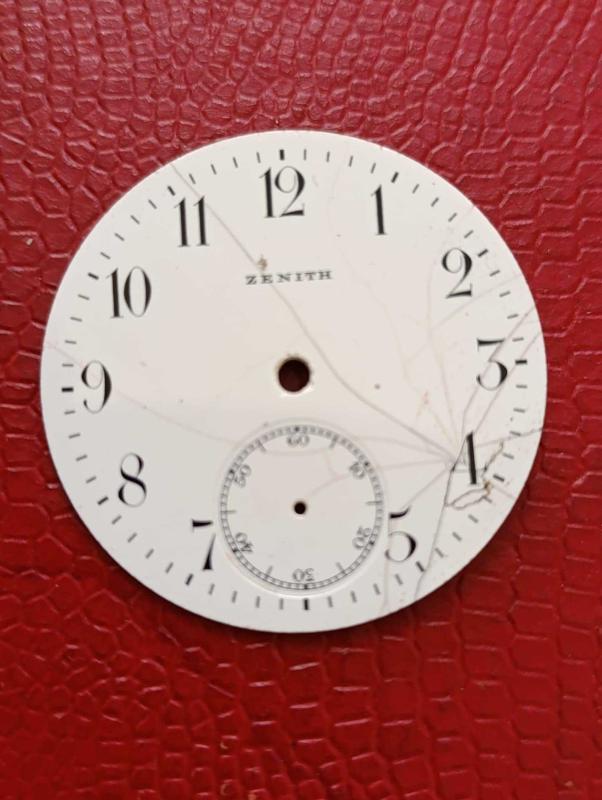 S18---- ZENITH EMAYE KÖSTEKLİ CEP SAATİ KADRANI--27 başlıklı antika/koleksiyon objesinin menşei belirtilmemiştir. Objenin ait olduğu dönem bilinmeketedir.