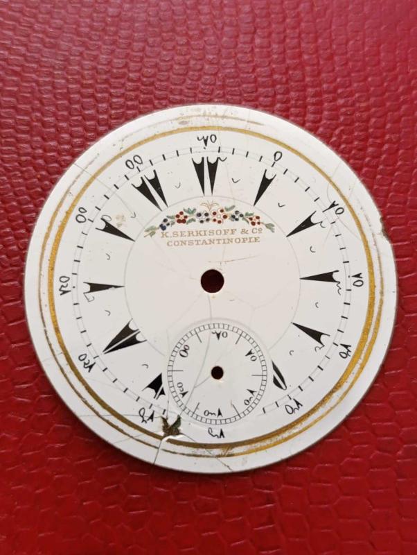 S19---- SERKİSOF OSMANLI EMAYE KÖSTEKLİ CEP SAATİ KADRANI--76 başlıklı antika/koleksiyon objesinin menşei belirtilmemiştir. Objenin ait olduğu dönem bilinmeketedir.
