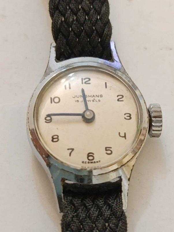 S8---JUNGHANS ESKİ KURMALI KADIN SAATİ--ÇALIŞIYOR başlıklı antika/koleksiyon objesinin menşei belirtilmemiştir. Objenin ait olduğu dönem bilinmeketedir.