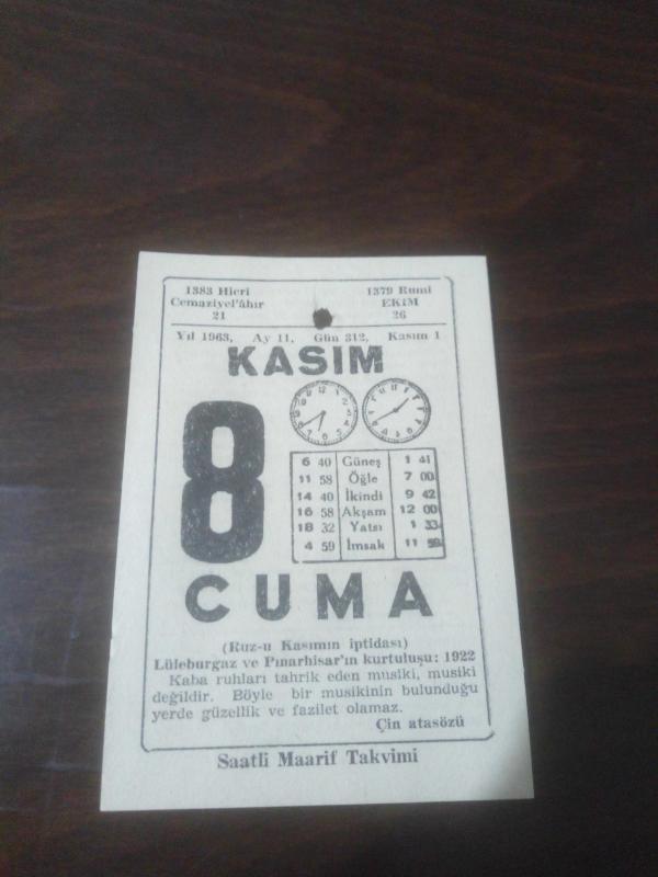 SAATLİ MAARİF TAKVİMİ TAKVİMİ 8 Kasım 1963 - DOĞUM GÜNÜ HEDİYESİ HEDİYELİK TAKVİM YAPRAĞI, 2 yıl önce satışa sunulmuştur.