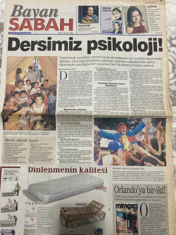 SABAH BAYAN GAZETESİ DOĞUM GÜNÜ HEDİYESİ (Turkish Newspapper) - 7 EYLÜL 1999 -Sevil Göktürk-Leyla Vural Volkan-Burcu kılıç-dersimiz psikoloji-Burcu kılıç-Elif Ergu-mimoza dergisi-artık doğal modeller moda-Derya Yıldız-Sevil Göktürk-okuluma arkadaşlarımı özledim-ayda Ersan Savaş-Süleyman Turan-patlıcan Sürmeli piliç tarifi-Emine Beder-Kaçıklar zor durumda-Melih Kibar-Uğur Dündar-Şafak Karaman-Esra balamir-Esra Ceyhan-Fatma Girik-Hülya Koçyiğit-Ali kırca-Müjde Ar-Orhan Uğuroğlu adlı eser Türkçe dilindedir.