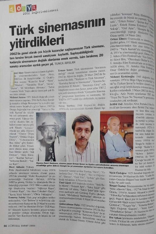 Kitap 2003 yılında yayınlanmıştır. 120 sayfadır. SABAH DERGİ GRUBU-SİNEMA DERGİSİ-POPÜLER SİNEMA DERGİSİ-3.500.000TL-2003/2-212130-SAYI:94-ŞUBAT-AMERİKAN VAROŞLARININ ÇOCUĞU EMİNEM SİNEMAYA EL ATIYOR-8 MILE-STEVEN SODERBERGH VE GEORGE CLONEY BİR BİLİM KURGUYLA KARŞIMIZDA-SOLARİS-2002 DOSYASI-FRED SINNEMANN-RUS GELIN-KASET-TERSYÜZ-BASKI-LEONARDO DİCAPRIO-STEVEN SPIELBERG'IN HIZMETİNDE-SIKIYSA YAKALA-GÜNDEM-OY OY EMINEM-CHARLIE KAUFMAN OLMAK-ÜLKEMIN KOMIK HALERI-DIJITAL VIDEO DRAMLARI-ŞİPŞAK MUTLULUK-MAMUT-KAPLAN VE TEMBEL HAYVAN-BUZ DEVRI-HER DEVRİN YÖNETMENI-BOX OFFICE-ELEŞTİRİLER-AYIN OYUNCULARI-GEORGE CLOONEY-SAMROCKWELL-RUTGER HAUER-PROFIL-MICHAEL VARTAN-BRITTANY MURPHY-FİLM ANALIZI-GÖRSEL YAPI-GENEL ÖZELLIKLER-KÜLT FILMLER-HAROLD AND MAUDE-3 KARE 1 FILM-AYIN MAKALESI-SİNEMA NEDIR DİYE DÜŞÜNMEK-EV EĞLENCESİ-SİNEMA ÇIKIŞI-NUR SÜRER-KIZLARIN ÖLÜ OZANLAR DERNEĞİ-SAMURAY TOM-HALİT REFİĞ-SPIKE JONZE-YILIN 50 FILMI-GECENIN NEFESI-ATEŞLI VE TATLI-GUILLERMO DEL TORO-GASPAR NOE-ÜMİT ÜNAL-WES ANDERSON-RICHARD KELLY-KAMERA ÖNÜNDEKİLER- adlı eser Türkçe dilindedir.
