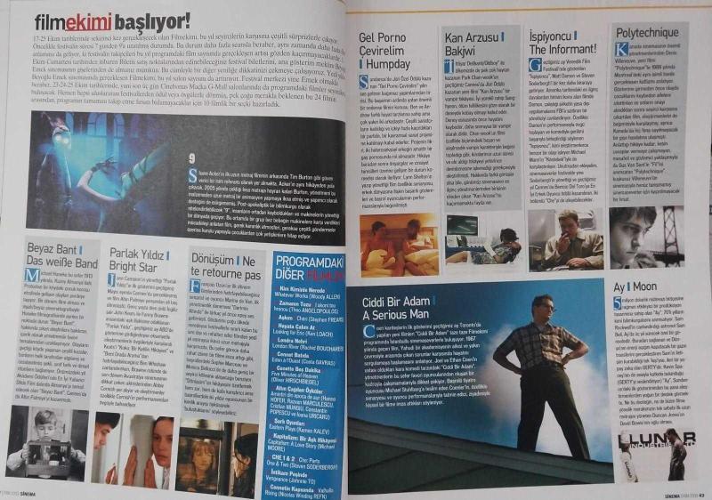 Kitap 2009 yılında yayınlanmıştır. 120 sayfadır. SABAH DERGİ GRUBU-SİNEMA DERGİSİ-POPÜLER SİNEMA DERGİSİ-5.5 TL-2009-SAYI:10-EKIM-YAKIN PLANDAKILER-MATRAK ADAMLAR-KARA BÜYÜ-AŞKIN (500) GÜNÜ-SÖYLEYİŞİLER-MAHMUT FAZIL ÇOŞKUN-UZAK IHTIMAL-ORHAN ESKIKÖY-İKİ DİL BİR BAVUL-CEMAL ŞAN-ACI-DÜNYA SINEMA TARIHI-FRANSA'DA YENI DALGA-INGILTERE'DE ÖZGÜR SİNEMA-AYIN OYUNCUSU-AMY ADAMS-FILMLERDEKI HIPPI KLIŞELERI-YILIN ANIMASYONU-YUKARI BAK-INSANIN EVI GIBI YOK-ODA BENI SEV(M)IYOR-SÖYLEDIKLERIYLE DEĞİİL SAKLADIKLARIYLA-KOMEDYENIN ÖLÜMÜ-BİR KONUŞABILSEK-IKI KIŞILIK HESAPLAŞMA-ALMA MAZLUMUN AHINI-DOSYA-BOX OFFICE VE YILDIZ TABLOSU-SEYIR DEFTERİ-ELEŞTIRLER-İÇTEN GELEN-EVDEKİ DÜŞMAN-RICKY-KIRLAIK SEVGİLİ-SİNEMDAN ÇIKMIŞ İNSAN-ÖZEL SEANS-IŞIK VE GÖLGE-ATILLA DORSAY-AYIN OYUNCUSU-AMY ADAMS-KÜLT FILMLER-PARENTS-YEŞİLÇAM KLASIKLERI-TURIST ÖMER UZAY YOLUNDA-SOUNDTRACK-BENI ORADA ARAMA-DVD REHBER-SİNEMA ÇIKIŞI-ERDEM AKAKÇE-OKURIBITO-KARANLIKTAKILER-KAMPÜSTE ÇIPLAK AYAKLAR-ZAMAN YOLCUSUNUN KARISI-DREAD-ZAFER ÇOCUKLARI-KANAL-İ-ZASYON-ŞÖHRET-MELEKLER VE KUMARBA adlı eser Türkçe dilindedir.