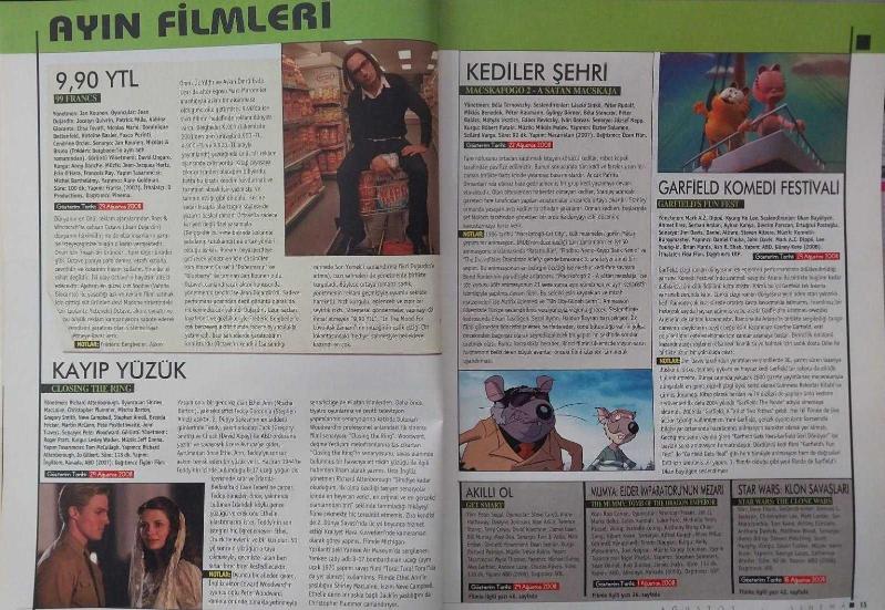 Kitap 2008 yılında yayınlanmıştır. 118 sayfadır. SABAH DERGİ GRUBU-SİNEMA DERGİSİ-POPÜLER SİNEMA DERGİSİ-5 YTL-2008-SAYI:8- AĞUSTOS-STAR WARS:KLON SAVAŞLARI-AKILLI OL-MUMYA:EJDER IMPARATORU'NUN MEZARI-10 PERFORMANSIYLA CHARLIZE THERON-KATEGORI DIŞI BİR USTA MARTIN SCORSESE-YENI SEZON-HELLBOY II-HARRY POTTER VE MELEZ PRENS-WALL-E QUANTUM OF SOLACE-BURN AFTER READING-HOUSE OF LIES-A.R.O.G.-20 UNUTULMAZ DÜĞÜN SAHNESİ-TEBDİLİMEKANDA AKSİYON VAR-GÜZELLIK VE YENETENE BİRLEŞİNCE-EYLL'DE GEL-BUNLARI ANLATMIŞ MIYDIK?-KOMİK ÇÜNKÜ ÇOK CİDDİ-BİR YASTIKTA KOCASINLAR-SİNEAMADAN ÇIKMIŞ INSAN*ÖZEL SEANS-WANTED-KADAVRA-KIZ KARDEŞİM EVLENIYOR-YEŞİLÇAM KLASIKLERI-HABABAM SINIFI-KÜLT FIMLER-DIE LETZTE RACHE-SOUNDTRACK ANALIZ-ALMOST FAMOUS-SİNEMA ÇIKIŞI-*SARP APAK-BOMBALAR ALTINDDA-ZİYARETÇİLER-UYURGEZER-ÖLÜM KAPANI-ZOHAN'A BULUŞMA-RUHUMA ASLA-AYNALAR-ÜÇ HANEDAN:EJDERİN DİRİLİŞİ-CASH-KEDİLER ŞEHRİ-KAYIP YÜZÜK adlı eser Türkçe dilindedir.