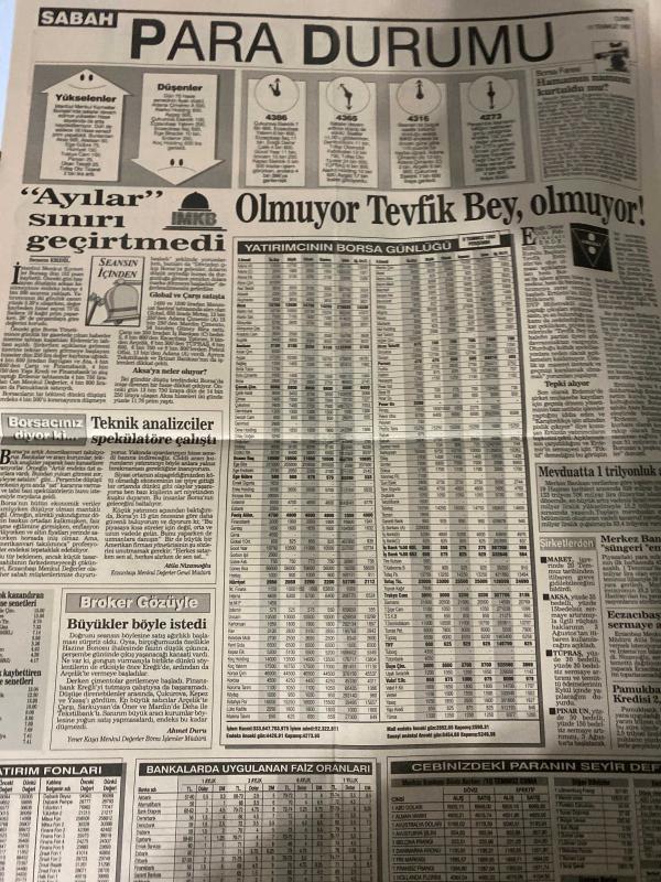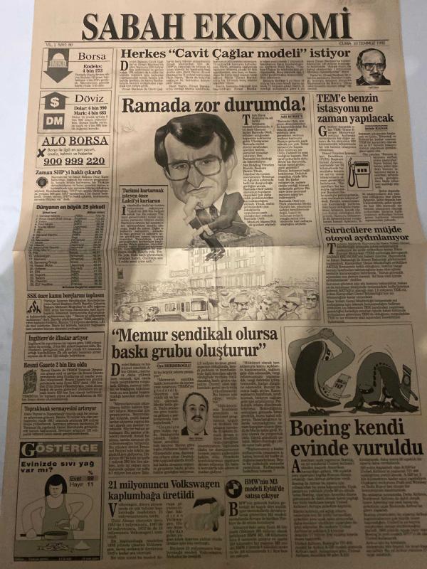 SABAH EKONOMİ GAZETESİ DOĞUM GÜNÜ HEDİYESİ - 10 TEMMUZ 1992 -Cavit Çağlar-Adil Korkut-Oya Eberioğlu-Nurdan Bernhardt-Meral Tamer-Tansu Çiller-Oral Mehmet Önge-Macias-Bernard Tapie-Herkes “Cavit Çağlar modeli” istiyor-Ramada zor durumda-TEM’e benzin istasyonu ne zaman yapılacak-Sürücülere müjde otoyol aydınlanıyor-“Memur sendikalı olursa baskı grubu oluşturur”-Boeing kendi evinde vuruldu-“İşçiyim ama Türk’üm”-At sırtında giden ve uçakla dönen kardeş-DEİK’te neler oluyor-Asıl heykeli dikilecek bakan Çiller değil Oral-Önce Gökova taşınsın-Sıradışı 2 davet-Bernard Tapie alıyor satıyor alıyor satıyor-Yabancı sermaye artık çok nazlı-Türkiye ithalatı ucuz ihracatı pahalı yapıyor-Borsa-Döviz-Endeks-Gösterge sabah ekonomi sizi her konuda bilgilendirir-puan durumu-yükselenler-düşenler-borsa faresi-yatırımcının borsa günlüğü-Senem Erdil-Brooker gözüyle-cebinizdeki paranın seyir defteri-bankalarda uygulanan faiz oranları-günlük fon-fonlar-şirketlerden-en çok kazandıran hisse senetleri-en çok kaybe adlı eser, Kitap > Süreli Yayınlar > Gazeteler > Türkiye > Genel > Günlük kategorisinde İkinci El olarak satıştadır.