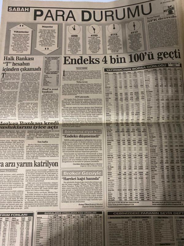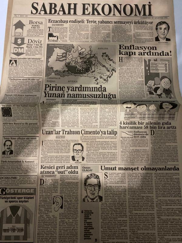 SABAH EKONOMİ GAZETESİ DOĞUM GÜNÜ HEDİYESİ - 29 AĞUSTOS 1992 -Bülent Eczacıbaşı-Enflasyon kapı ardında-Pirinç yardımında Yunan namussuzluğu-Uzan’lar Trabzon Çimento’ya talip-Kesici geri adım atınca “out” oldu-Umut manşet olmayanlarda-Türkiye-Irak petrol boru hattından ümit kesildi-Şimdi radyolu olduk-Eczacıbaşı’nın 3. sektörü-Değişmeyen tek gerçek, değişimdir-Ciller PTT’yi özelleştirerek 105 trilyon sağlayacakmış-Ankara çanağı kırdı-Finale tek kalan Apa oldu, ihale iptal-Japonlar, düşünen bilgisayar yapıyor-İş ve İşçi Bulma Kurumu işçi buluyor, iş bulamıyor adlı eser, Kitap > Süreli Yayınlar > Gazeteler > Türkiye > Genel > Günlük kategorisinde İkinci El olarak satıştadır.