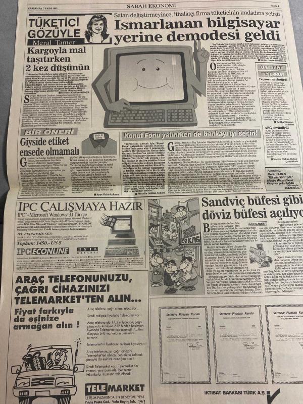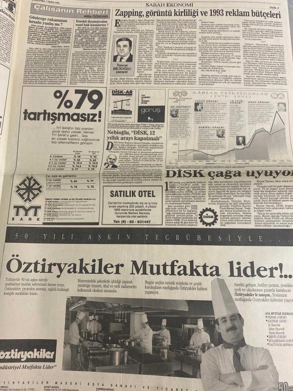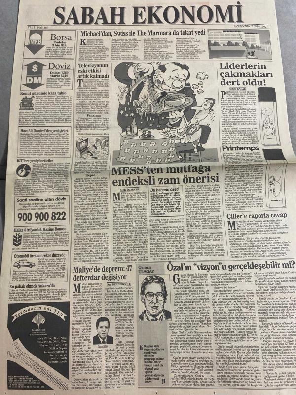 SABAH EKONOMİ GAZETESİ DOĞUM GÜNÜ HEDİYESİ - 7 EKİM 1992-Michael Jackson-Şelale Kadak-Atilla Özsever-Oya Erenberkioğlu-Osman Ulagay-Tuncer Biçgiloglu-Meral Tamer Michael’dan Swiss ile The Marmara da tokat yedi-Televizyonun eski etkisi artık kalmadı-MESS’ten mutfağa endeksli zam önerisi-Liderlerin çakmakları dert oldu-Maliyede deprem 47 defterdar değişiyor-Çiller’e raporla cevap-Özal’ın vizyonu gerçekleşebilir mi-Transtürk tepetaklak-Aracı kurum borsası oluştu-Hisse senedine rağbet artıyor-Avrupalı hisse senedi aşığı-Gösterge rakamının hesabı yanlış mı-Emekli ikramiyesine nasıl hak kazanırım-Zapping görüntü kirliliği ve 1993 reklam bütçeleri-Nebioğlu DİSK 12 yıllık arayı kapatmalı-Kargo ile mal taşırken 2 kez düşünün-Ismarlanan bilgisayar yerine demodesi geldi-Giyside etiket ensede olmamalı-Konut fonu yatırırken de bankayı iyi seçin-Sandıviç büfesi gibi döviz büfesi açılıyor Karikatür isimleri ve çizerler: MESS mutfak karikatürü-Liderlerin çakmakları karikatürü adlı eser, Kitap > Süreli Yayınlar > Gazeteler > Türkiye > Genel > Günlük kategorisinde İkinci El olarak satıştadır.