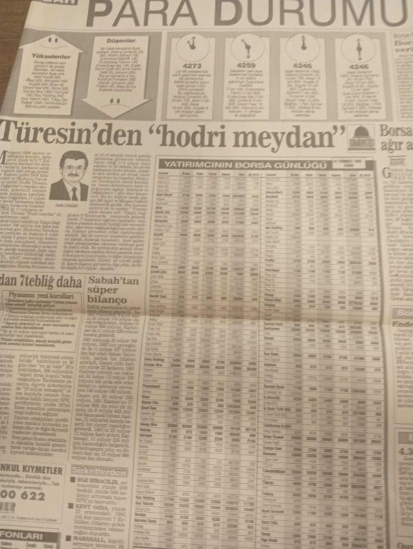 SABAH EKONOMİ GAZETESİ SABAH DOĞUM GÜNÜ GAZETES - 1 ağustos 1992-cebinizdeki para-yatırım fonları- yatırımcının borsa günlüğü-şirketlerin fiyat kazanç oranı-para durumu-döviz-borsa-borsa faresi-mehmet çetingüleç-osman ulagay-yahya demirel-yavuz çizmeci-teoman turan-tevfik türesim-senem erdil-emin hattat-atilla dişbudak-nedim özkan-ali rıza kardüz-meral tamer-adnan kahveci-süleyman demirel-nurdan bernard adlı eser, Kitap > Süreli Yayınlar > Gazeteler > Türkiye > Genel > Günlük kategorisinde İkinci El olarak satıştadır.