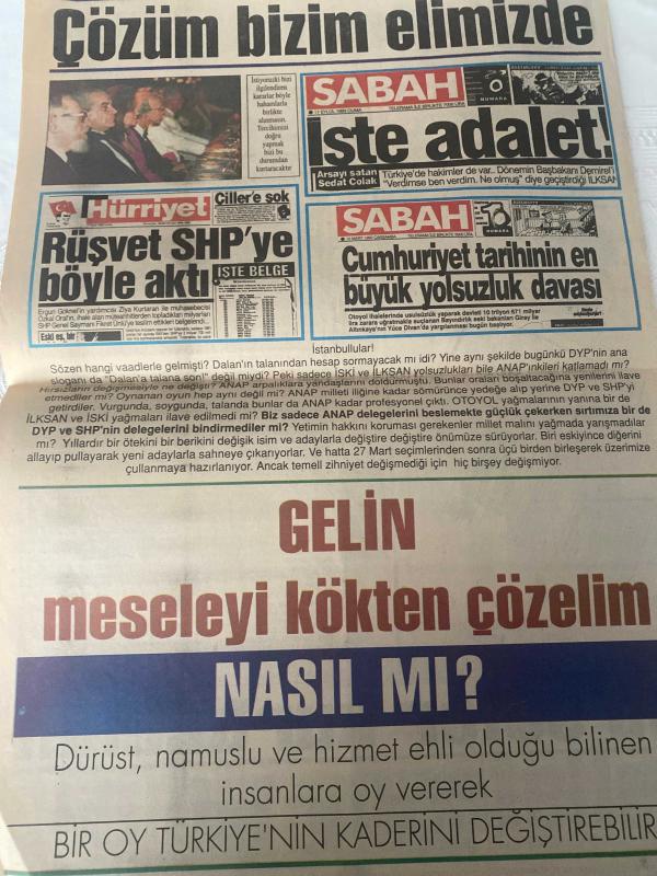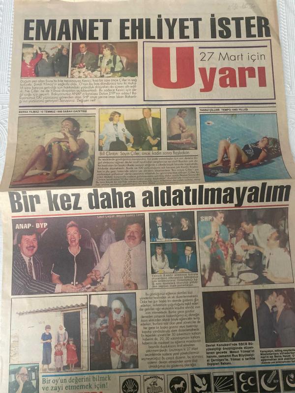 SABAH GAZETESİ DOĞUM GÜNÜ GAZETESİ- 27 MART 1993-Tansu Çiller-Mesut Yılmaz-Bill clinton-cavit Çağlar-Beyza Taner-Güneş Taner-işte bize dayatılan adaylar bedrettin Dalan-Zülfü Livaneli-çözüm bizim elimizde-Sedat Çolak-Ergun Göknel-Ziya kurtaran-Özkal Oral-Fikret Ünlü-çözüm bizim elimizde-sayfa sayısı dört adlı eser Türkçe dilindedir. Eserin içeriğinde Türkçe dilinde bölümlere de yer verilmektedir.