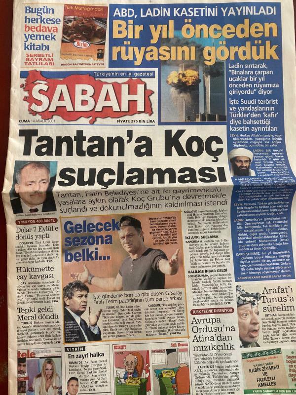 SABAH GAZETESİ DOĞUM GÜNÜ HEDİYESİ - 14 ARALIK 2001 - TAM TAKIM 36 SAYFADIR -Tantan - Koç - Ladin - Fatih Terim - Lucescu - İki Başkan - Daum - İlhan - Hakan - Alpay - Yıldırım - Cevat Tuksavul - Ersin Kartal - Nuri Ergin - Cansun - Metin Tokat - Okay Gönensin - Galya - Ramazan Batary - Prof. Kemal Alemdaroğlu - Prof. Uçak - Sezer - Mustafa Şekeroğlu - İsmail Sarıboğa - Murat Savaş - Güncer Mengü ABD Ladin kasetini yayınladı - Bir yıl önceden rüyasını gördük - Tantan’a Koç suçlaması - Gelecek sezona belki - Avrupa Ordusu’na Atina’dan mızıklık - Yönetim kaybetti - Tercüme bahanesi - Ben seçim için malzeme olmam - Daum’dan kontra - Amatörce davrandılar - Londra hatırası - Alpay’dan yaylım ateş - Ziraat’tan 2 avans - Sosyete cinayeti çözüldü - Sabancılar’ı seviyoruz - Umut rüzgarı - Hayırlı gelişmeler - Önce fareyi defet… - Azrail Arif’i istedi - Sofraya geç oturan - Ailem gururla beni seyrediyor - Fahişenin intikamı geri tepti - Beyoğlu ışıl ışıl - YÖK’ten komik tercih Cumhur Başkan - adlı eser, Kitap > Süreli Yayınlar > Gazeteler > Türkiye > Genel > Günlük kategorisinde İkinci El olarak satıştadır.