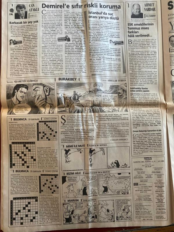 SABAH GAZETESİ DOĞUM GÜNÜ HEDİYESİ - 16 AĞUSTOS 1999 -TAM TAKIM 38 SAYFADIR -Yavuz Donat-Selahattin Duman-İsa Göksugüzel-Fami eren-Aysel çerçioğlu-necmettin erbakan-Ali coşkun-cemil çiçek-Abdullah gül-Atina NATO’yu satmış-Amele Pazarı-TSK sert uyarı-Faruk Diril-Yusuf Adalı-hülya Avşar-deniz altında 24 saat-Yusuf Gürsoy-pompalı dehşeti-Rumlardan prense taciz-prens Charles-marcio taktiği-İskender-erman toroğlu-Mehmet Ali Yılmaz-Hagi-Kadir Çetin çalı-Hakan Şükür-Avni aker’de izdiham-Erol Ersoy’a herkes kızdı-başkent’te golsüz gece-yeni lider Gençlerbirliği-Rıdvan Dilmen’e protesto-Ostenstad sınıfı geçti-cankurtaran Ahmet Dursun-3000 kişilik protesto-Beşiktaş Çarşı grubu mezarda şampiyonluğa hayır-İlker Ateş-ölüm makinesi-Eniac Pennsylvania Üniversitesi-Douglas ile jones evlilik yolunca-Murat Birsel-Coşkun Kırca-Bill Clinton-Şükrü Kızılot-Can Ataklı-Ahmet Vardar-Nizamettin Veziroğlu-Abdullah Turhan-Patrick McDonnell-Mort Walker-Dick Browne-Tom Armstrong-Erbakan faktörü-Ne genel grevi-Clint, DİNÇ BİLGİN tarafından kaleme alınmıştır. Kitap MEDİ GRUP tarafından yayınlanmıştır. 38 sayfadır. SABAH GAZETESİ DOĞUM GÜNÜ HEDİYESİ - 16 AĞUSTOS 1999 -TAM TAKIM 38 SAYFADIR -Yavuz Donat-Selahattin Duman-İsa Göksugüzel-Fami eren-Aysel çerçioğlu-necmettin erbakan-Ali coşkun-cemil çiçek-Abdullah gül-Atina NATO’yu satmış-Amele Pazarı-TSK sert uyarı-Faruk Diril-Yusuf Adalı-hülya Avşar-deniz altında 24 saat-Yusuf Gürsoy-pompalı dehşeti-Rumlardan prense taciz-prens Charles-marcio taktiği-İskender-erman toroğlu-Mehmet Ali Yılmaz-Hagi-Kadir Çetin çalı-Hakan Şükür-Avni aker’de izdiham-Erol Ersoy’a herkes kızdı-başkent’te golsüz gece-yeni lider Gençlerbirliği-Rıdvan Dilmen’e protesto-Ostenstad sınıfı geçti-cankurtaran Ahmet Dursun-3000 kişilik protesto-Beşiktaş Çarşı grubu mezarda şampiyonluğa hayır-İlker Ateş-ölüm makinesi-Eniac Pennsylvania Üniversitesi-Douglas ile jones evlilik yolunca-Murat Birsel-Coşkun Kırca-Bill Clinton-Şükrü Kızılot-Can Ataklı-Ahmet Vardar-Nizamettin Veziroğlu-Abdullah Turhan-Patrick McDonnell-Mort Walker-Dick Browne-Tom Armstrong-Erbakan faktörü-Ne genel grevi-Clint adlı eser Türkçe dilindedir.