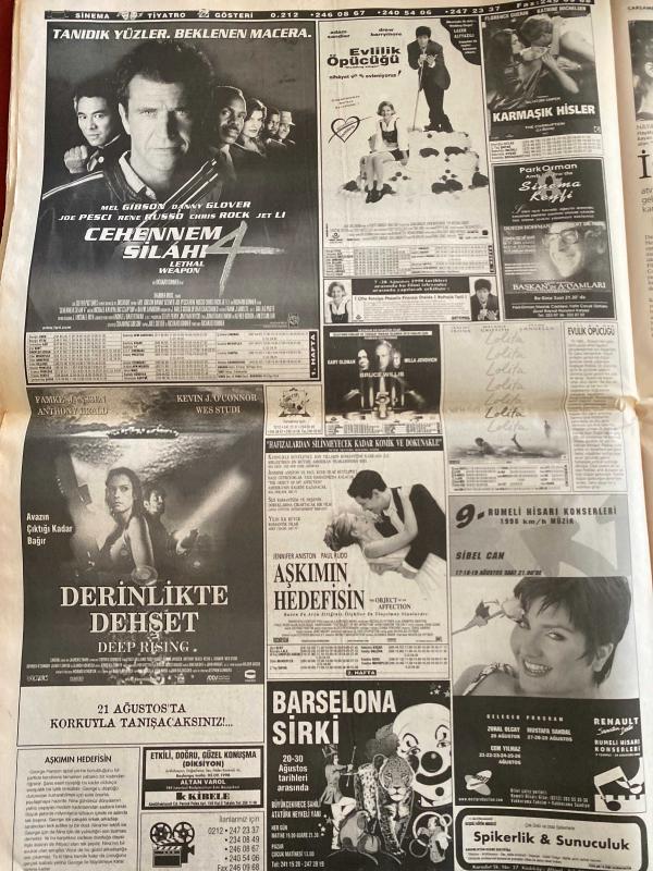 SABAH GAZETESİ DOĞUM GÜNÜ HEDİYESİ - 19 AĞUSTOS 1998 - TAM TAKIM 36 SAYFADIR -Alaattin Çakıcı-Hillary Clinton-Demirel-Ruhat Mengi-Cengiz Mengü-Selahattin Duman-Ali Şen-John Toshack-Süleyman Seba-Adnan Aybaba-Mehmet Ağar-Süleyman Demirel-Recep Şeker-Terim-Hagi-Bülent Uygun-Yasin Ezgü-Högh-Nuri İstebas-Adnan Polat-Ümit Davutoglu-Murat Yakın-Oktay-Biyediç-Mel Gibson-Danny Glover-Joe Pesci-Rene Russo-Chris Rock-Jet Li-Dev Barrymore-Florence Quentin-Azize Kabouche-Gary Oldman-Bruce Willis-Milla Jovovich-Kevin J. Connor-Wes Studi-Jennifer Aniston-Paul Rudd-Sibel Can-Mustafa Sandal Ya konuşursa-Bildikleri Türkiye’yi yerinden sallar-Pasaport sahte damga gerçek-İtirafı Hillary hazırladı-Clinton’ın yalanı-Demirel düğüne neden gitmedi-Göndermeyin beni asarlar-Sırtımızdan kumar oynamayın-Toshack yönetimi uyardı-Süper Hayal Ligi-Spor dünyası Ağar’ın düğününde buluştu-Oğlumu kimseye vermem-Hagi’yle bir yıl daha-Fener, 75. yıl anısına AF ediliyor-Süren’den büyük övgü-Tolunay Kocaelispor’a karşı bir adlı eser, Kitap > Süreli Yayınlar > Gazeteler > Türkiye > Genel > Günlük kategorisinde İkinci El olarak satıştadır.
