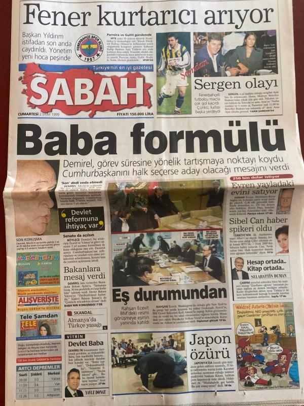 SABAH GAZETESİ DOĞUM GÜNÜ HEDİYESİ - 2 EKİM 1999 - TAM TAKIM 34 SAYFADIR -Yıldırım-Sergen-Süleyman Demirel-Rahşan Ecevit-Selahattin Duman-Yavuz Donat-Murat Yakın-Oktay-Baki Biçakcı-Hakan Ünsal-Hüsnü Çil-Hakan Yavaş-Metin Aşık-Parreira-Gullit-Denizli-Scala-Hoddle-Cemil Turan-Cüneyt Tanman-Taffarel-Fatih Terim-Luiz Otavio-Cüneyt Tanman-Ümit Milli Takım-Emre Aşık-Rıdvan Dilmen-Briegel-Fatih Doğan-Kenan Doğulu-Nadide Sultan-Arto-Aydın-Galip Sokullu-Umut Akyürek-Gökhan Sezen-İhsan Kayral-Fatih Ürek-Orhan Üstündağ-Gülser Gürsoy-Gökhan Sezen-Adnan Öztan Fener kurtarıcı arıyor-Sergen olayı-Baba formülü-Devlet reformuna ihtiyaç var-Bakanlara mesaj verdi-Eş durumundan-Japon özürü-Hoca kim olsun-Murat’a ev hapsi-Boliç’in bileti kesildi-Ve Oktay Leverkusen’de-Sağol Ankaragücü-Fenerbahçe saldırıyor-Yıldırım’ın isyanı-Yeni hocanın Allah yardımcısı olsun-Taffarel’i ezdirmem-Yaylalar yaylalar-Haydi Türkiye finale-Fatih Ürek sahnede Bizimcity-Karikatür-Selahattin Duman adlı eser, Kitap > Süreli Yayınlar > Gazeteler > Türkiye > Genel > Günlük kategorisinde İkinci El olarak satıştadır.